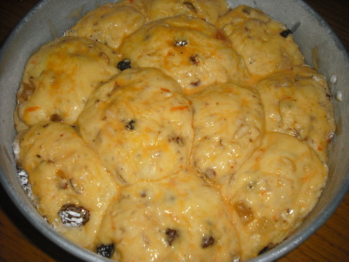 Deixar a levedar até quase duplicar, cerca de 45 minutos ou de um dia para o outro. Pincelar com gema de ovo e cozer em forno moderado cerca de 40 minutos. Se necessário colocar um recipiente com água por baixo para não queimar.