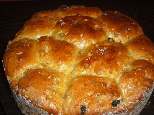 Hoje é dia de reis e manda a tradição que devemos comer o bolo rei, mas como a tradição já não é o que era decidi fazer o escangalhado. No ano Novo, comi, em casa do meu irmão, a massa é igual ao do bolo rei mas quanto a mim este fica melhor. Gostei, fiquei logo com vontade de experimentar. Pesquisei aqui e ali e dei com esta receita aqui. Fiz algumas alterações, mas ficou mesmo muito bom, com uma massa super fofa. Experimentem e bom dia de reis!!