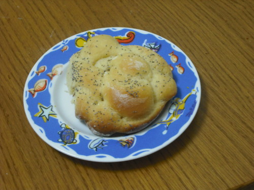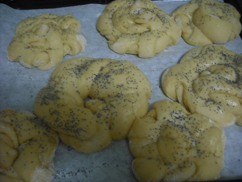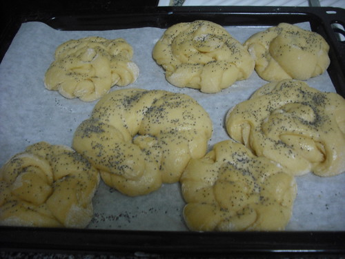Pincelar com leite ou ovo batido (acrescentei sementes de papoila).