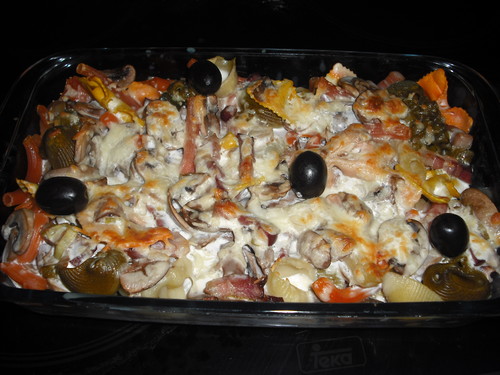 Ora aqui está um prato fácil de confeccionar, delicioso e bonito! Vi esta receita num programa de culinária na TV, e como tinha todos os ingredientes que eu gosto, pensei logo em fazê-lo. Cá está ele e não me decepcionou, o resto da família também adorou. Não tirei fotos do passo-a-passo, mas não é difícil.