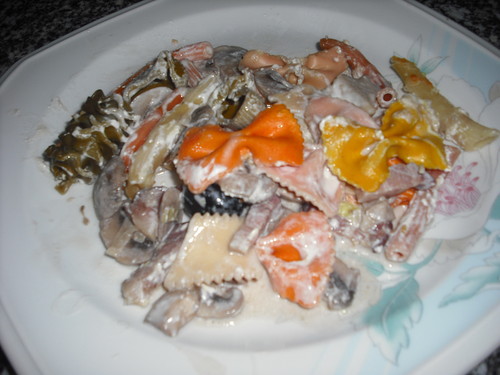 Estas massas são tão lindas que até me deu pena cozinhá-las, mas não podia deixar estragá-las e então fi-las com bacon e cogumelos e ficaram uma delícia!