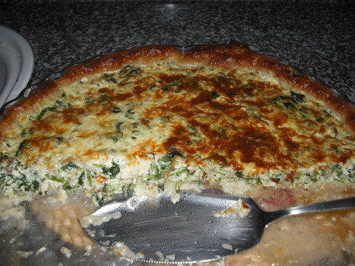 Já tinha postado aqui uma tarte de alho francês, hoje trago uma de massa folhada com frango e espinafres, que é também deliciosa.