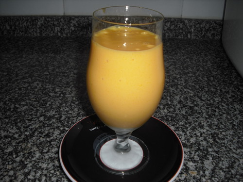 Bater ligeiramente o leite condensado, juntar os iogurtes, a polpa de manga e continuar a bater até estar tudo misturado. Dissolver no micro ondas as folhas de gelatina previamente demolhadas, e juntar ao preparado: Mexer, deitar em copos ou em taças e levar ao frigorífico umas 2 horas.