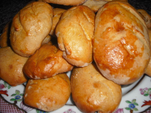 Começar por cozer as batatas doces, reduzi-las a puré, juntar a margarina e o açucar mexer, deixar arrefecer um pouco. Seguidamente junte a aguardente, mexa, junte o ovo e a farinha com a canela e a erva doce e amasse, junte o requeijão desfeito com um garfo . Vá acrescentando mais farinha até se conseguirem moldar os bolinhos. Colocam-se em tabuleiro polvilhado com farinha, pincelam-se com gema de ovo, (eu pincelei uns com leite outros com gema de ovo). Vai a forno quente a 180º cerca de 25 minutos