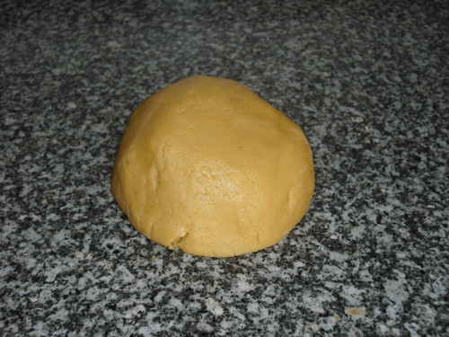 Faz-se uma massa com a farinha, 25 gr de açucar, a margarina cortada aos bocadinhos e à temperatura ambiente, o ovo e a água. Trabalha-se tudo junto com as pontas dos dedos até estar tudo ligado. Faça uma bola e deixe descansar no frigorífico cerca de 2 horas.