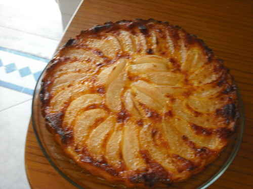 Esta tarte é tão boa que desaparece num instante. Desta vez aumentei a receita e fiz 1 receita e meia, como a minha forma de tarte é pequena tive que fazer noutra sem fundo amovível que forrei com papel vegetal, para a poder retirar direita.
